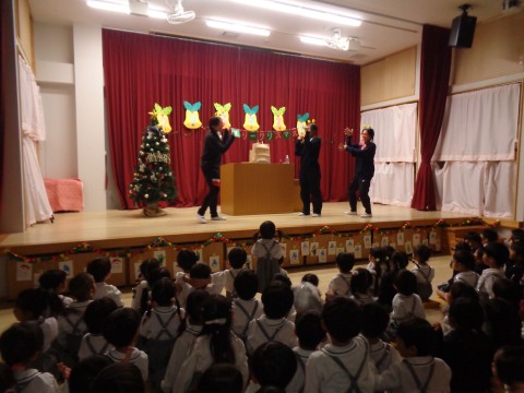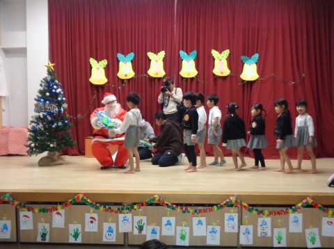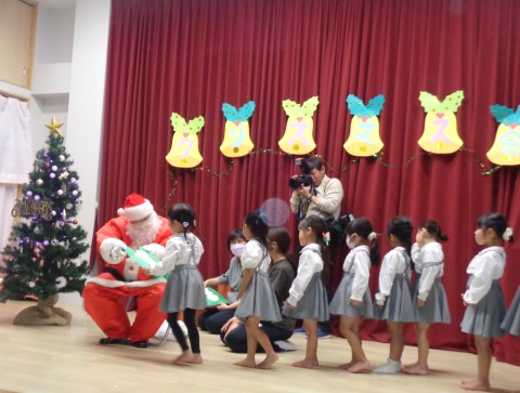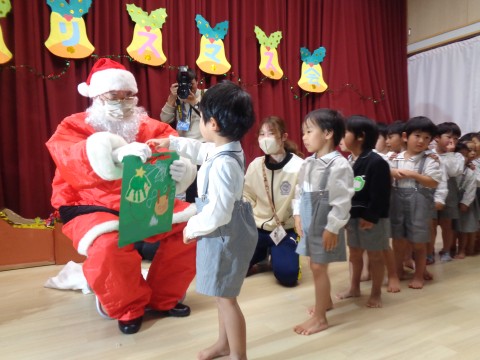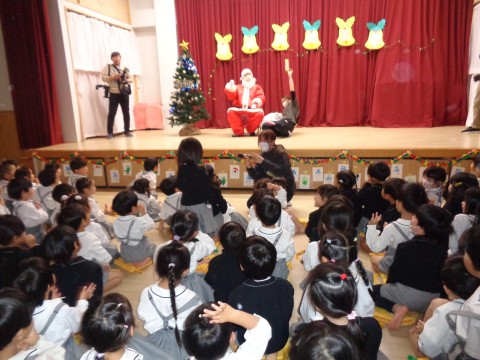 遠くからトナカイの鈴の音が響きます。 白鳥幼稚園にサンタさんがきました。 先生のマジックの出し物もあり大盛り上がり。 質問コーナーでは、みんな聞きたいことが沢山あったようです。 サンタさんからのプレゼントは一人ひとり手渡しでもらえました。 人見知りのある子はサンタさんと目も合わさずにプレゼントを貰っている姿もみられました。 お家でクリスマス会の話を聞いてみてくださいね。 |