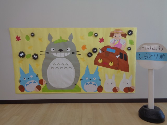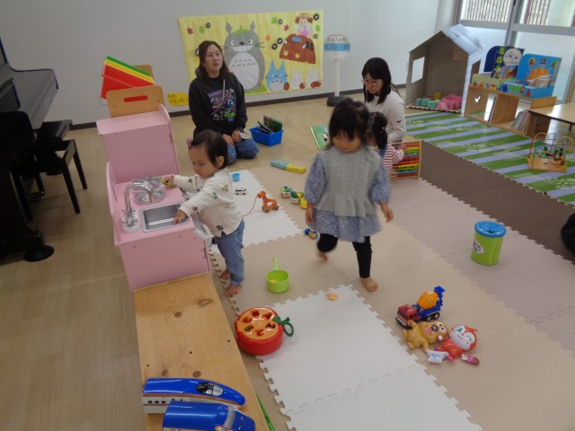 冷たい空気の中に降り注ぐ太陽の光が、心と体をポカポカ温めてくれるようです。11月のちゃおちゃお広場も元気に開催中です‼ お部屋の中で少しでも秋を感じてもらえれば…と思い、トトロの写真スポットを作ってみました♡トトロの前にお子様をちょこんと座らせて記念写真はいかがですか⁉ おはなしランドでは、『これ、誰だ⁉』のペープサートで、アンパンマンの仲間達が出てきたり、紙芝居を楽しみました‼ お家以外の場所で遊ばせてみようかな⁉と思っている保護者のみなさん♬予約はいりませんので、気軽に遊びに来て下さいね☆ 次回は17日(月)です。25日(火)は、おはなしランドも予定しています‼ お待ちしています♪ |