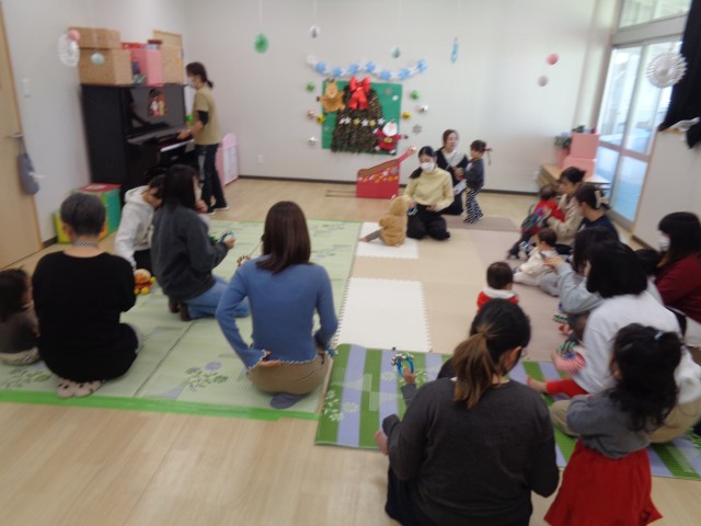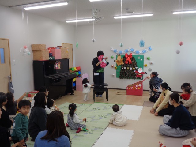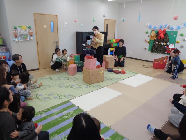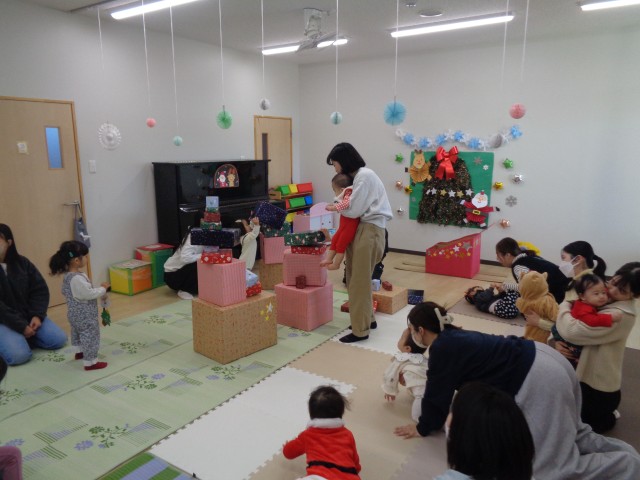 クリスマスの飾りで賑やかなちゃおちゃお広場には、昨日温かな笑顔が溢れていました。 保護者の方と一緒に取り組んだ制作は、素敵なオリジナルツリーになりました‼完成したツリーは記念にお持ち帰り♡ プレゼント箱積み重ねゲームでは、予想に反し⁉とっても上手で全然崩れず…気付くとプレゼントタワーが出来ていましたね‼ ピアノ音楽に合わせて歌った『赤鼻のトナカイ』はクリスマスの雰囲気たっぷりの鈴の音が響きわたっていました♬ 最後はペープサート。トナカイとサンタさんが出てきて喜ぶ子ども達♡ みんなと過ごせたクリスマス会、とっても楽しかったです‼沢山のご参加ありがとうございました。 年末年始はお休みを頂き、次回は1月中旬頃‼お正月の遊びを計画中です。詳しくはホームページ【ちゃおちゃお日記】をご覧下さい。 冷たい北風に負けず年末年始も元気に過ごして下さいね‼ |