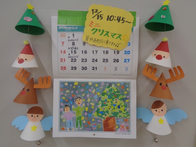 今年も残りわずかとなりましたね。幼稚園(ちゃおちゃお)に来てくれた子ども達は、もうすぐ迎えるクリスマスにワクワクが溢れている様に見えました。 12月最後のちゃおちゃお広場は、クリスマス間近という事で【おはなしランド】も、いつもとは、ちょっぴり違いました。 パネルシアター『あわてんぼうのサンタクロース』では、みんなで鈴を鳴らして、参加型に‼ 自由に音を出してもらい、楽しく出来ました♬ 帰る時には、手作りクリスマスカードをお持ち帰り‼子ども達が好きな所にシールを貼る事で完成するクリスマスカードです♡ |