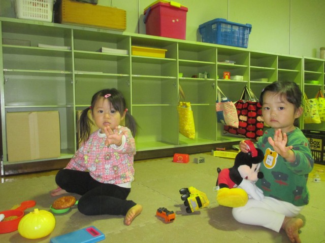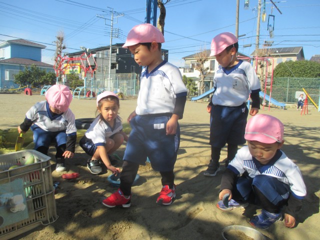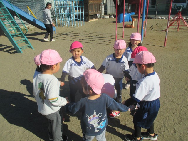 朝晩は冷え込みますが日中は過ごしやすく、子ども達は外で元気に遊んでいます。 先週、今週は、1月の製作(干支スタンプ)や絵の具遊び、劇遊び(大きなカブ)がありました。 絵の具が大好きな子ども達は製作でも絵の具遊びでも大喜びで、朝から絵の具を見つけると「今日絵の具やるの?」とウキウキした様子で聞いてきました。 同じところにぐるぐると円を描く子もいれば、様々なところに描いたり、手に絵の具を塗って手形をとったり…個性あふれる作品になりました。 劇遊びでは、きちんと順番を守り、「うんとこしょ!どっこいしょ!」とカブを引っ張ることができていました。ぬけたカブに大喜びの子ども達。帰りに、「今日は何をしたか覚えてる?」と聞くと、「カブ~!」と教えてくれ、楽しい経験になったと思います。 来週も楽しい活動をたくさん準備しています。元気な姿でお会いできることを楽しみにしています。 また、無料体験や来年度の新規募集もまだまだ受け付けています。お電話お待ちしております。 |